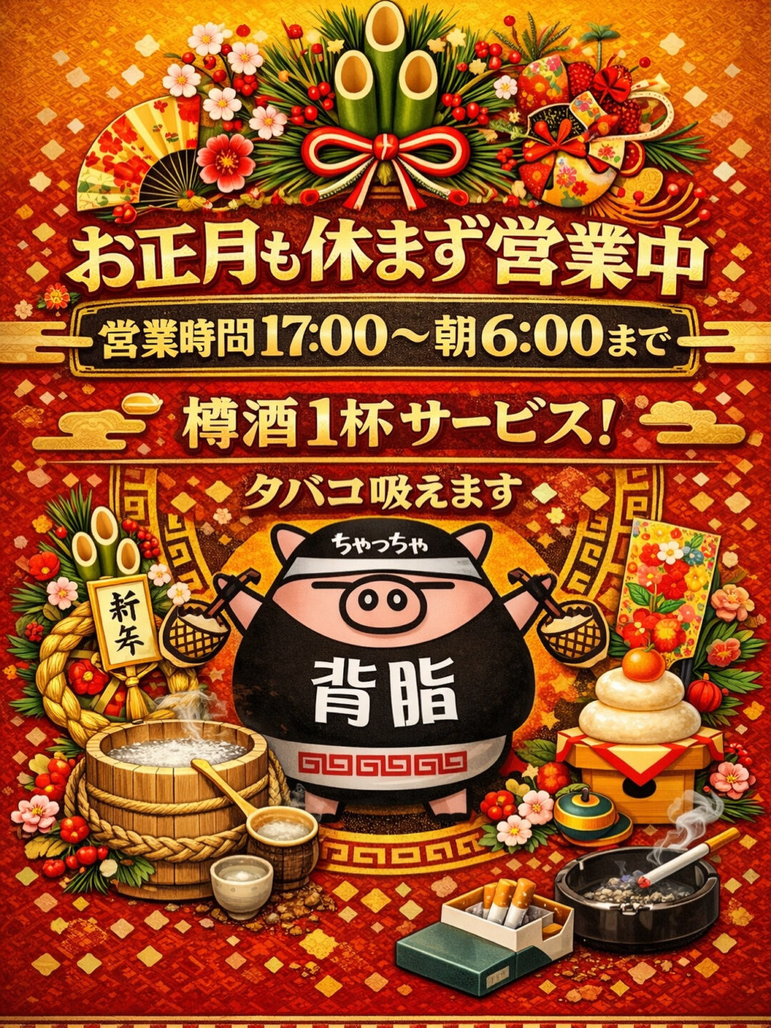 三が日は【17:00〜朝6:00】の変則営業となります。